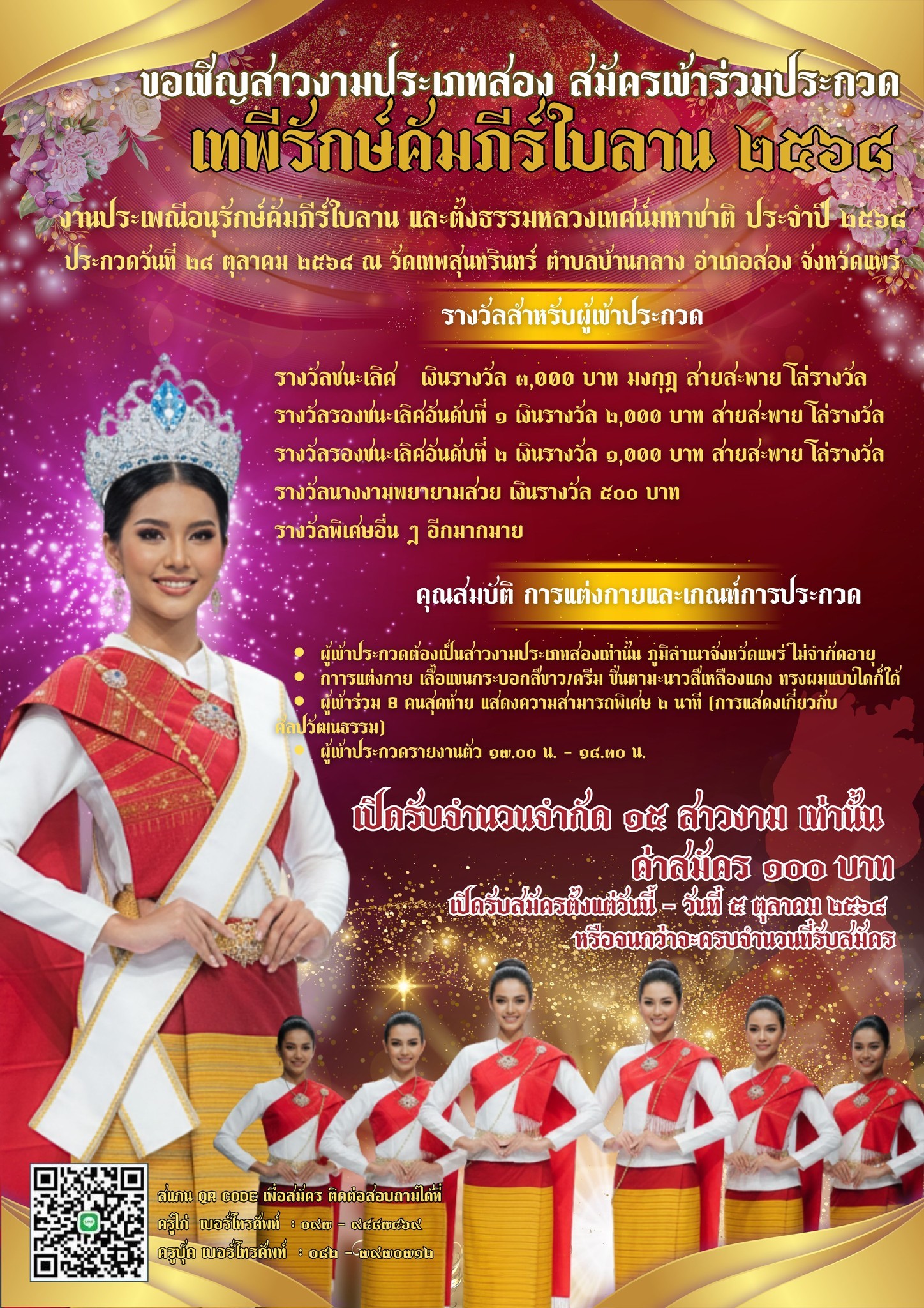 ✨👑 ขอเชิญผู้หญิงข้ามเพศร่วมประกวด เทพีรักษ์คัมภีร์ใบลาน 2568 ในงานประเพณีอนุรักษ์คัมภีร์ใบลาน และตั้งธรรมหลวงเทศน์มหาชาติ 🌸